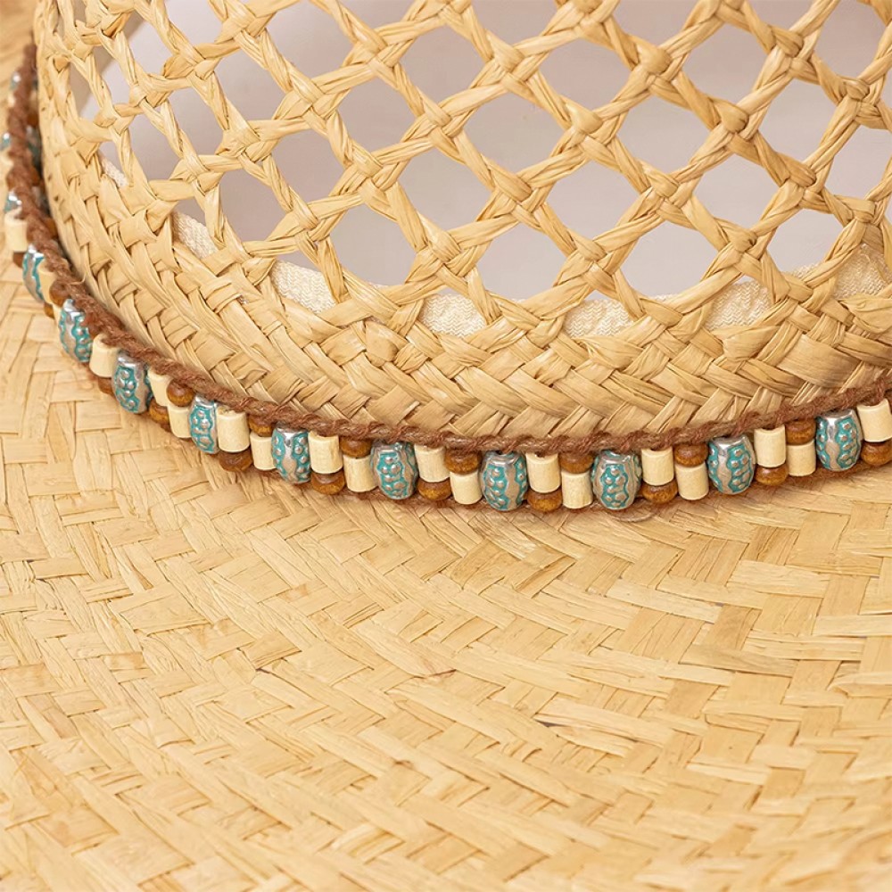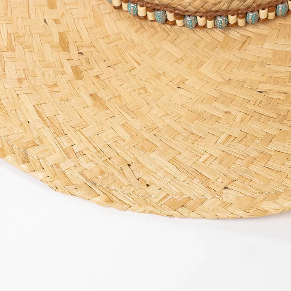 Key Features: Wide brim cowboy hat style, adorned with beaded chains.
