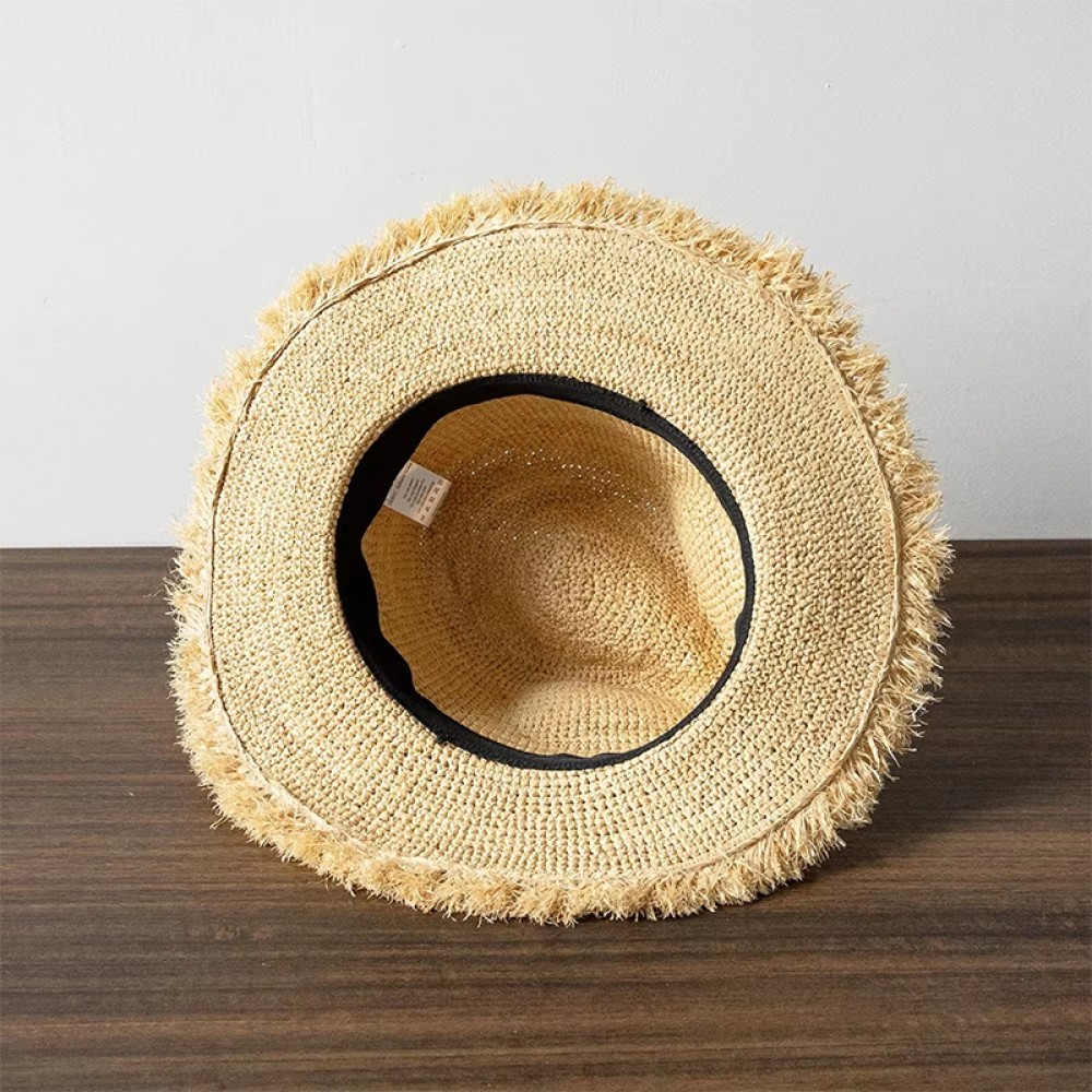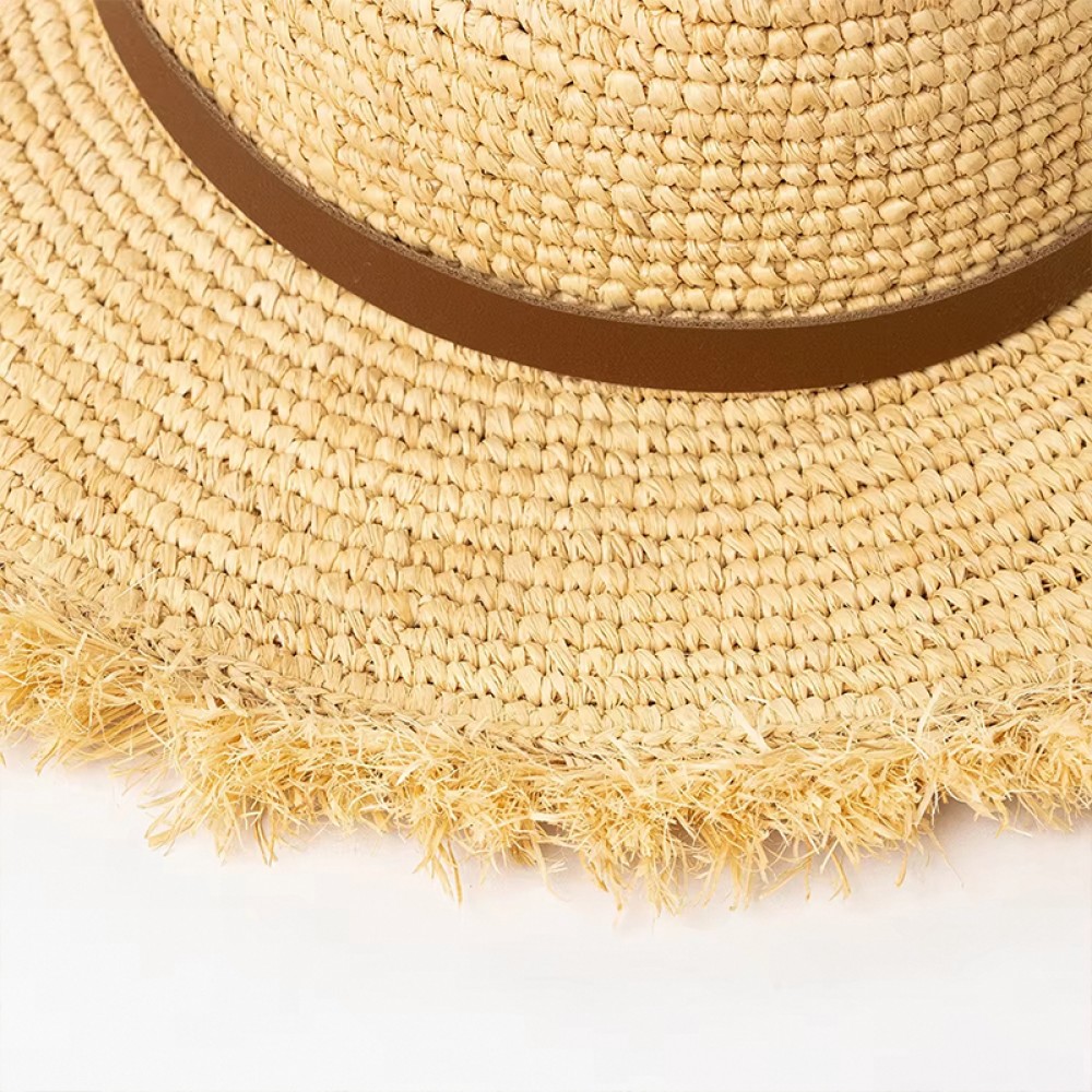 Natural Raffia Straw Hand Crochet Fedora Hat