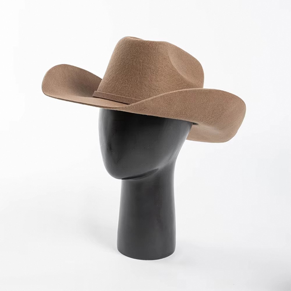 Unisex Felt Cowboy Hat with Buckle Accent – ​​Wide-Brimmed Wool Hat