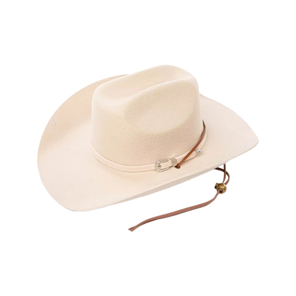 Design Details: Adorned with a felt band and an adjustable cord strap.