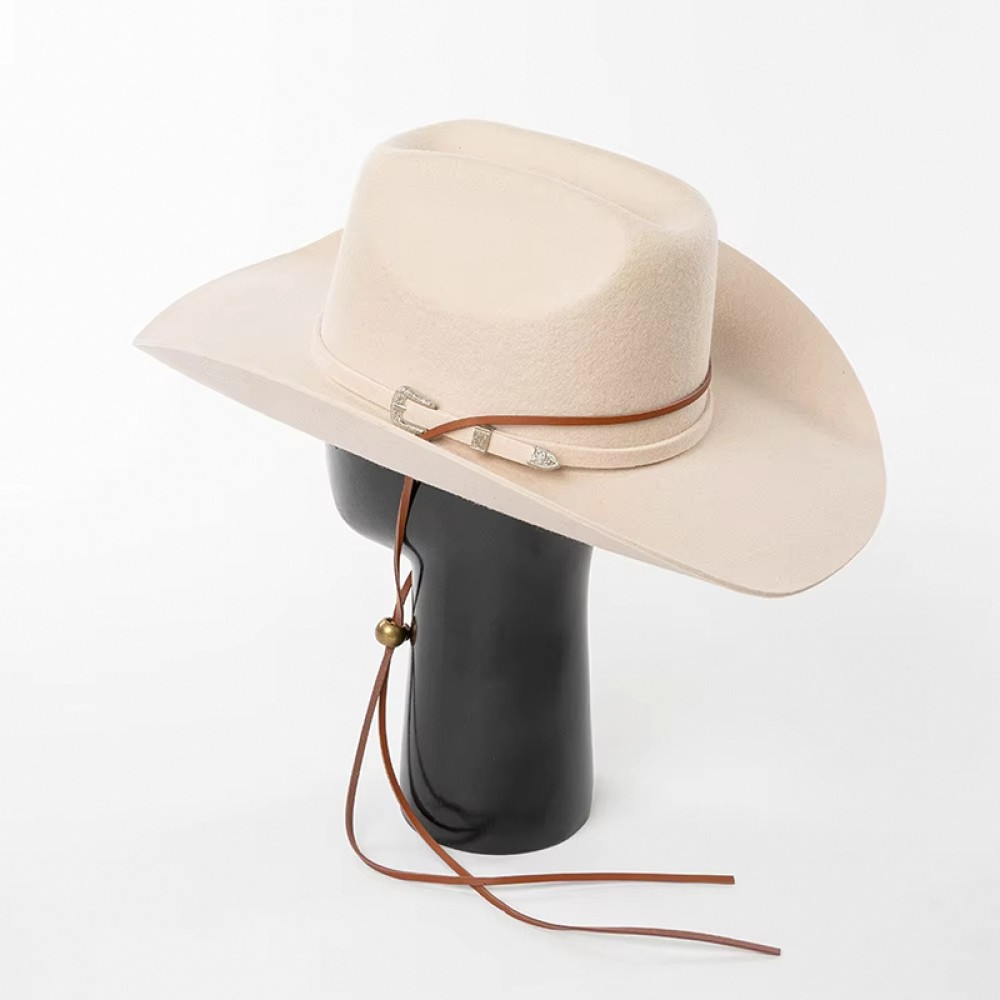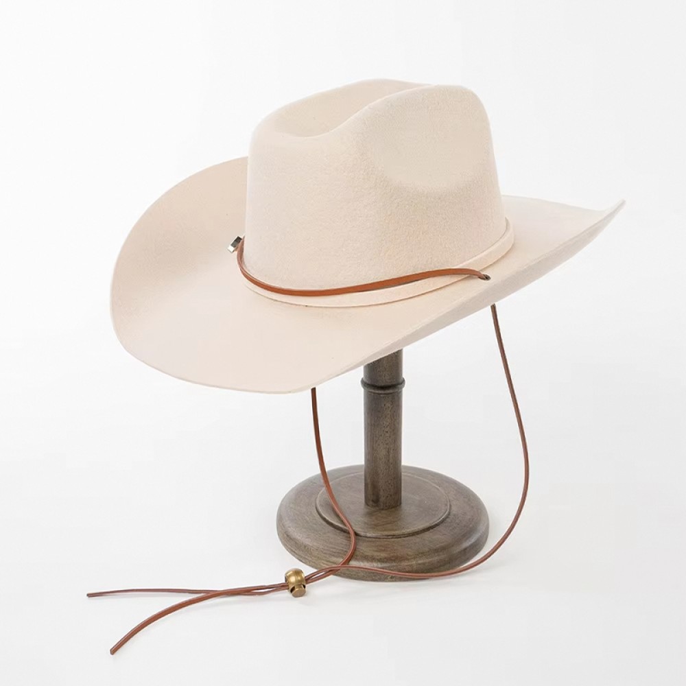 Cowboy Hat with Felt and Cord Bands — Wide-Brimmed Felt Hat