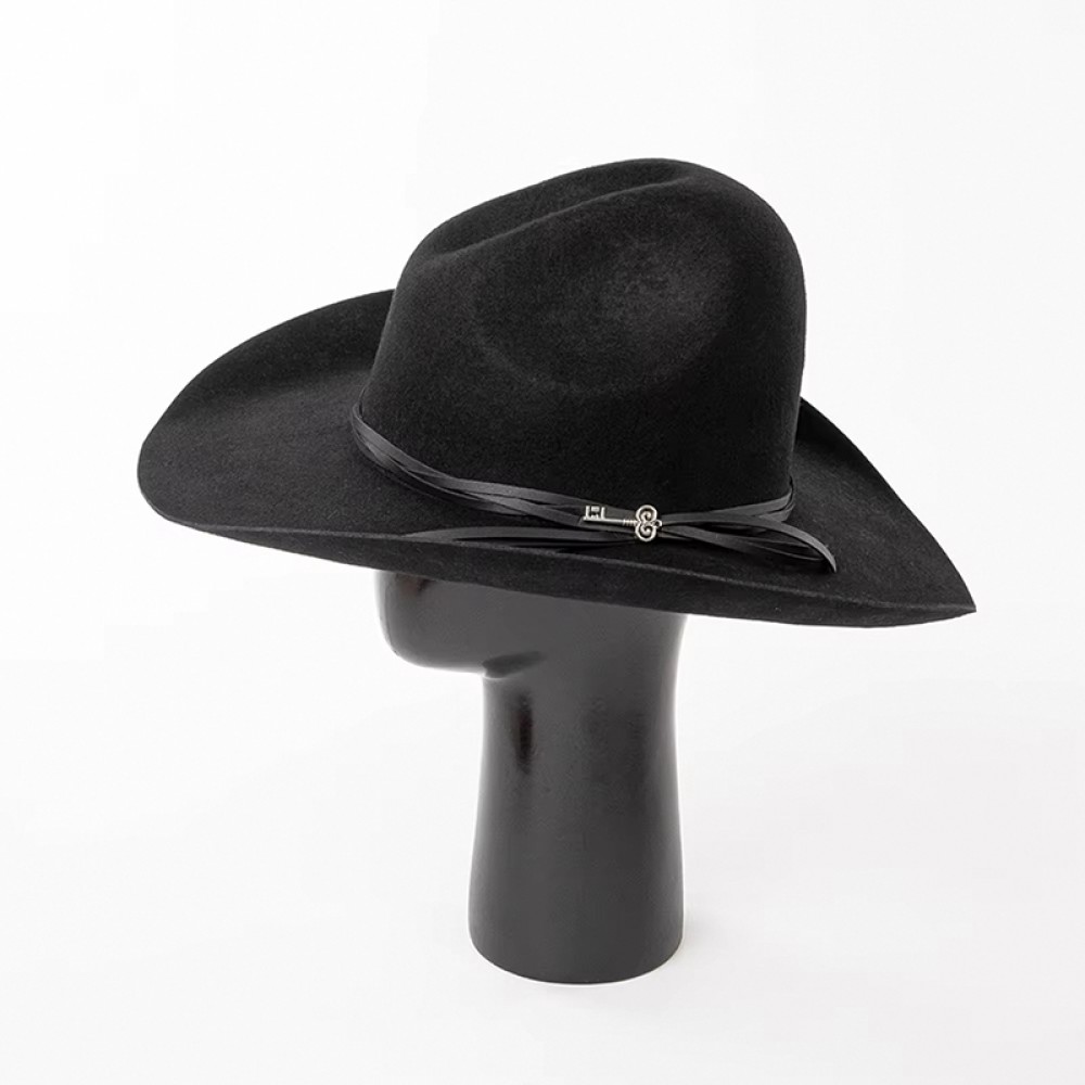Unisex Wide-Brimmed Cowboy Hat with PU Cord and Key Charm