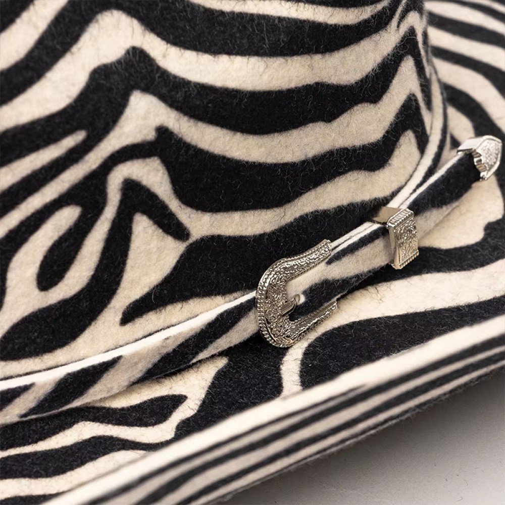 Wool Felt Western Cowboy Hat Zebra Pattern