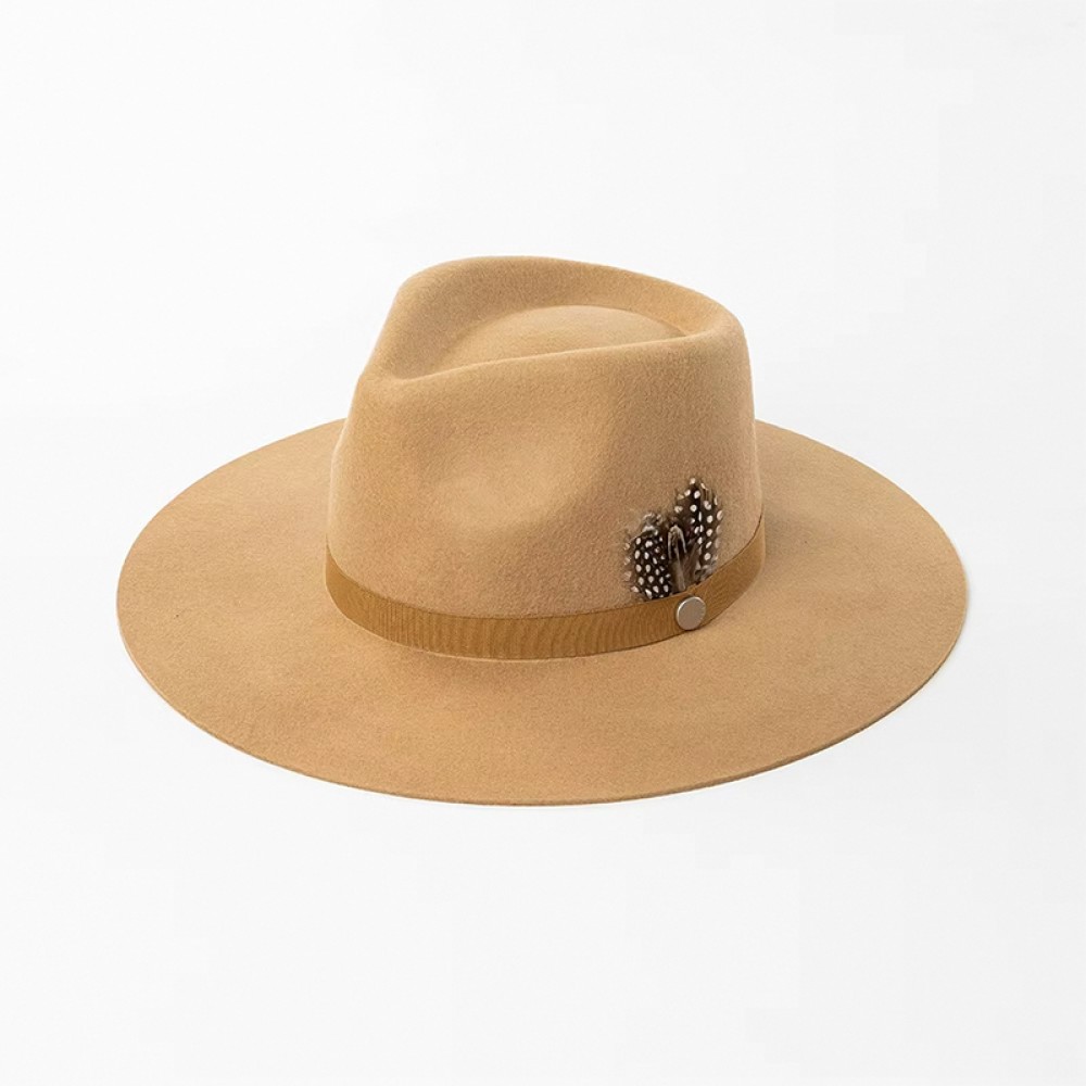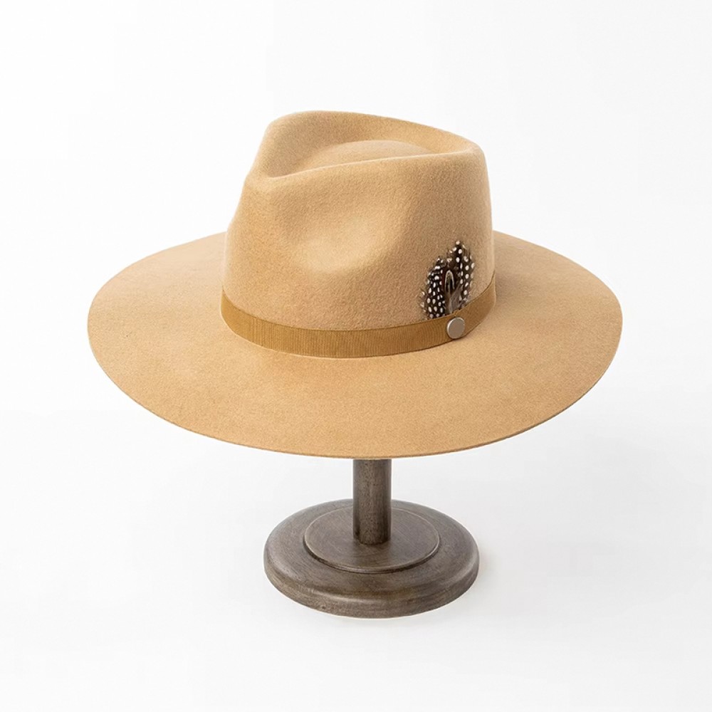 Key Features: Made of 100% wool felt, paired with classic ribbon and feather decoration, presenting an elegant retro style.