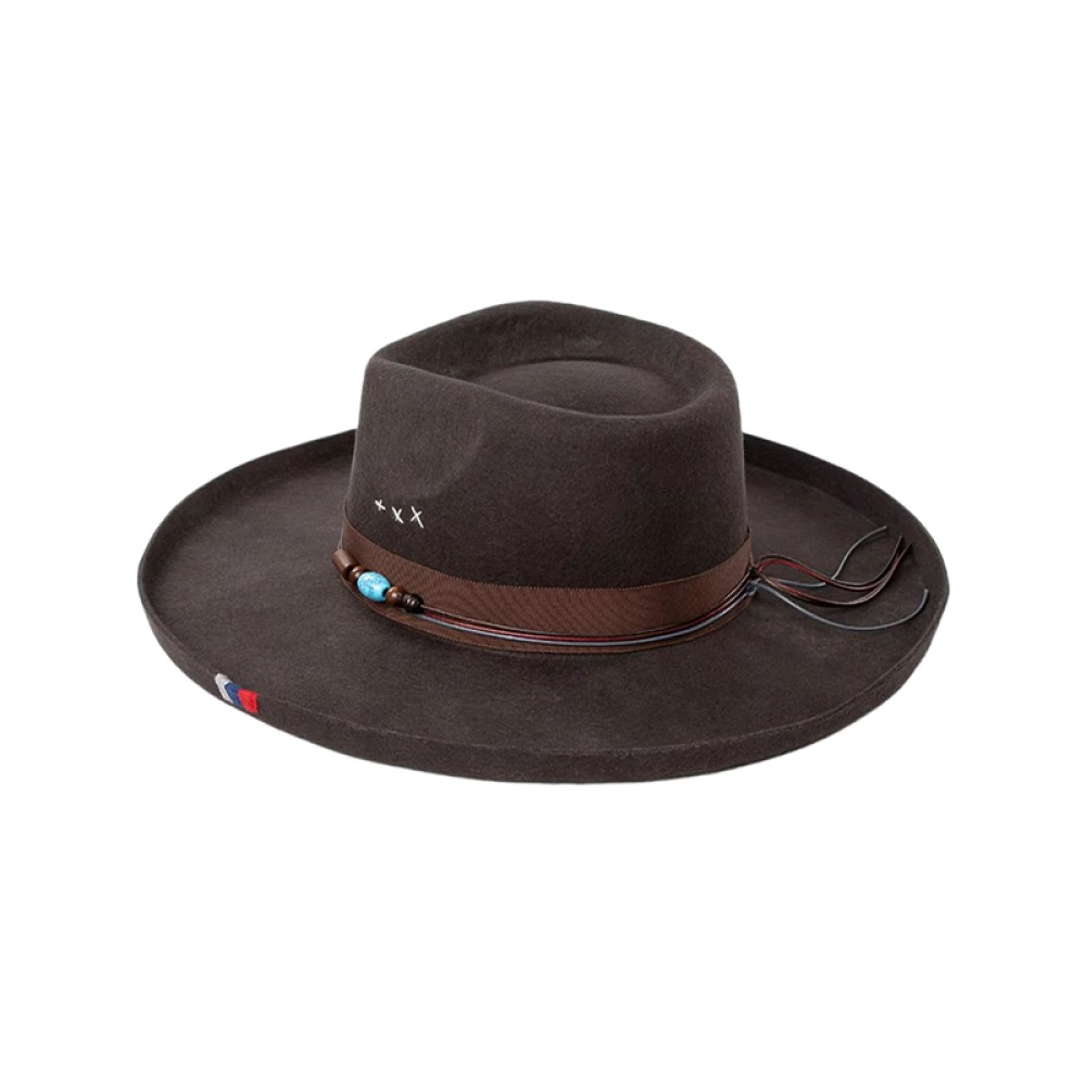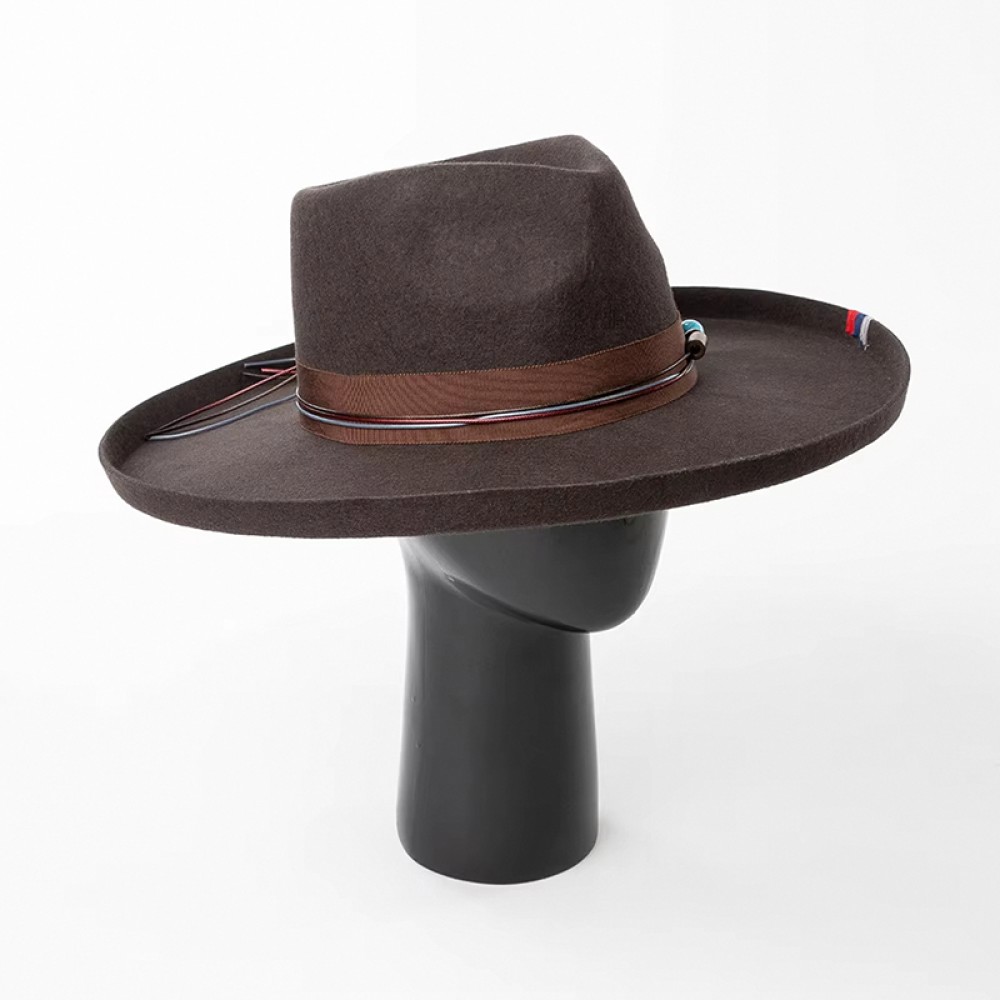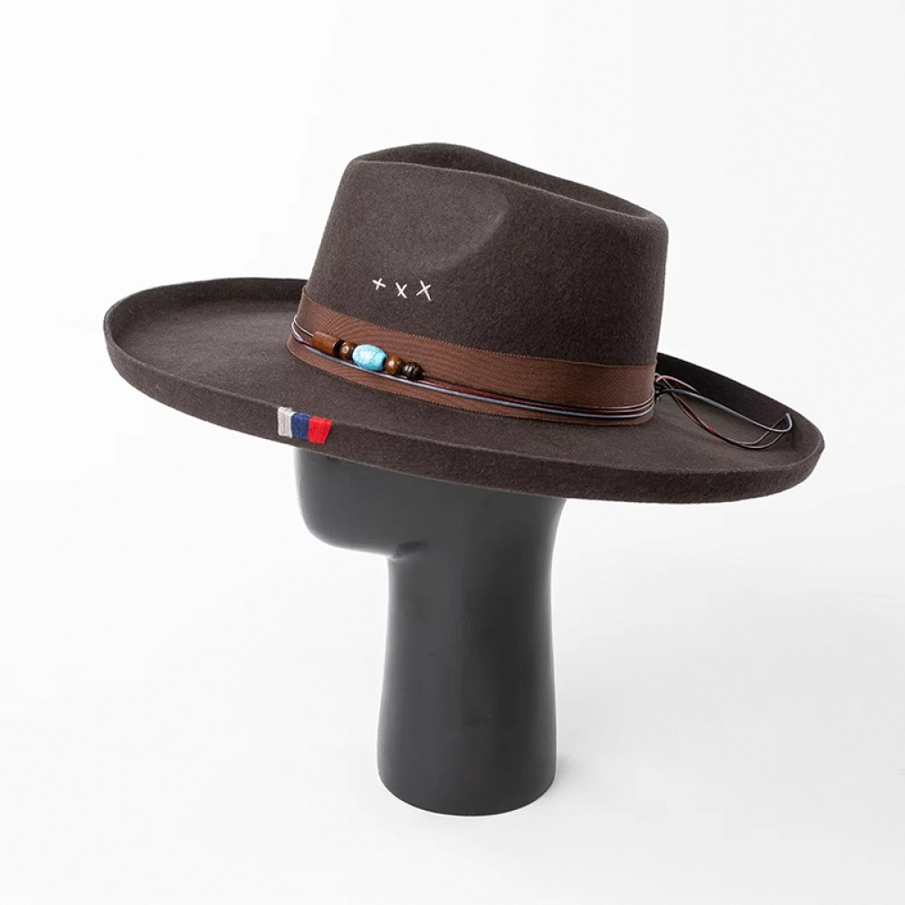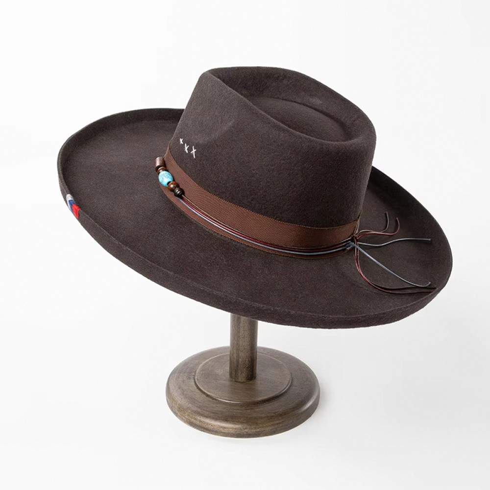 Hand-Embroidered Wide-Brim Fedora Hat