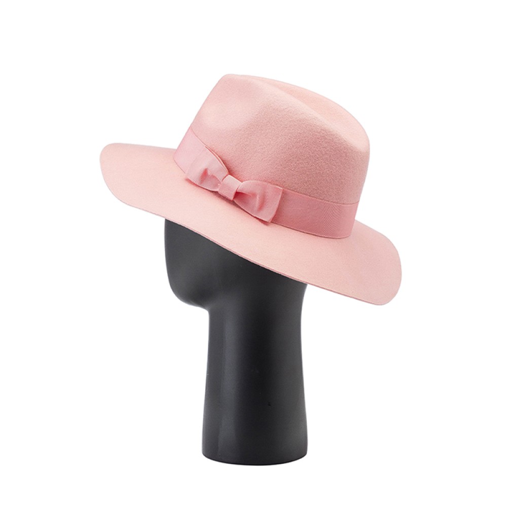 Key Features: Made of 100% wool felt, paired with a ribbon bow decoration, presenting a classic fedora style.