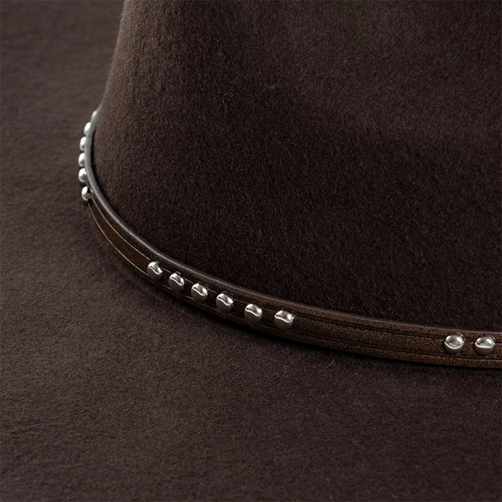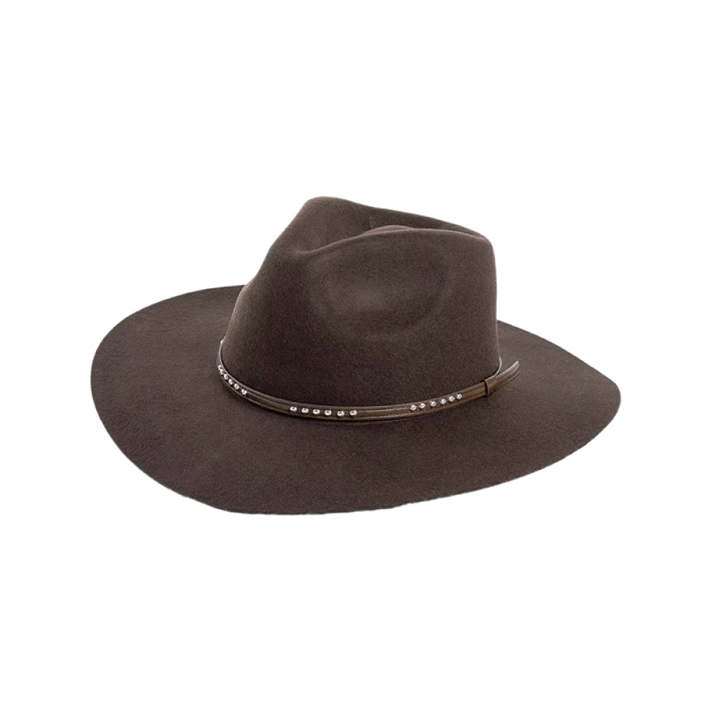 Wool Felt Fedora with Faux PU Leather Band and Wide Brim