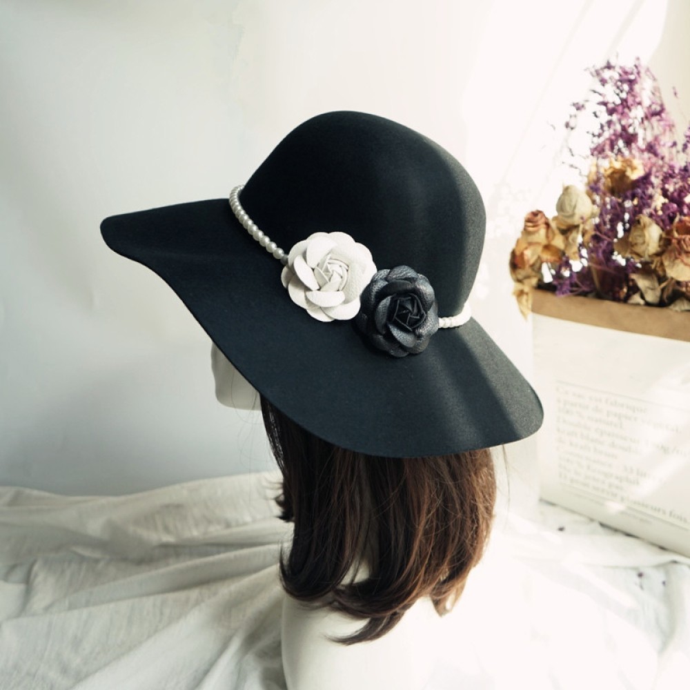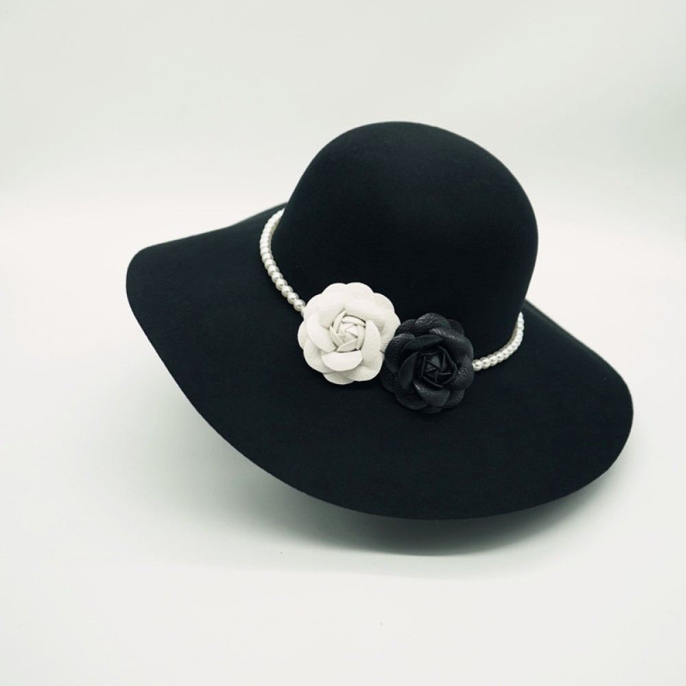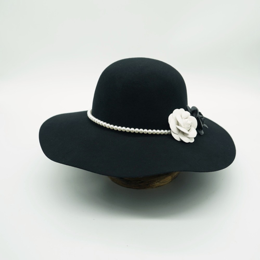 Wavy Brim Camellia Pearl Wool Felt Hat