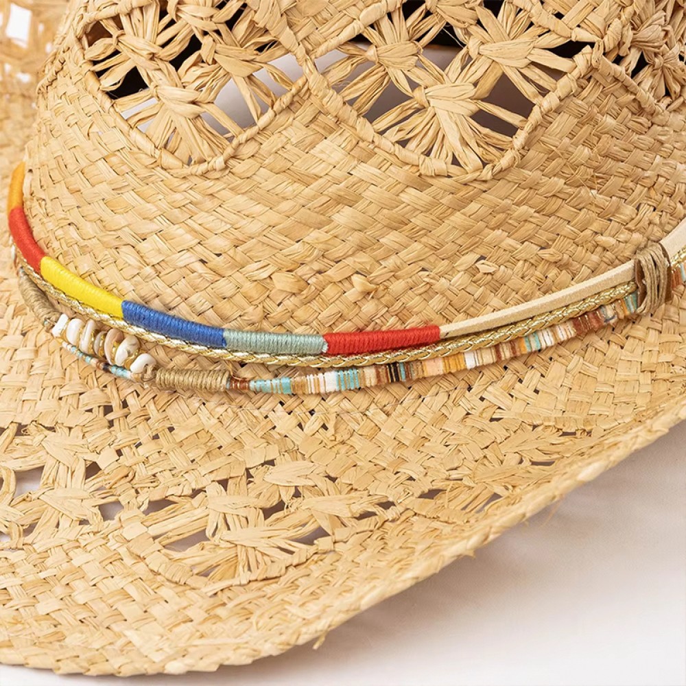 Raffia Straw Woven Wide Brim Cowboy Hat