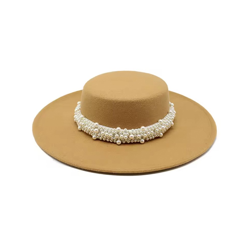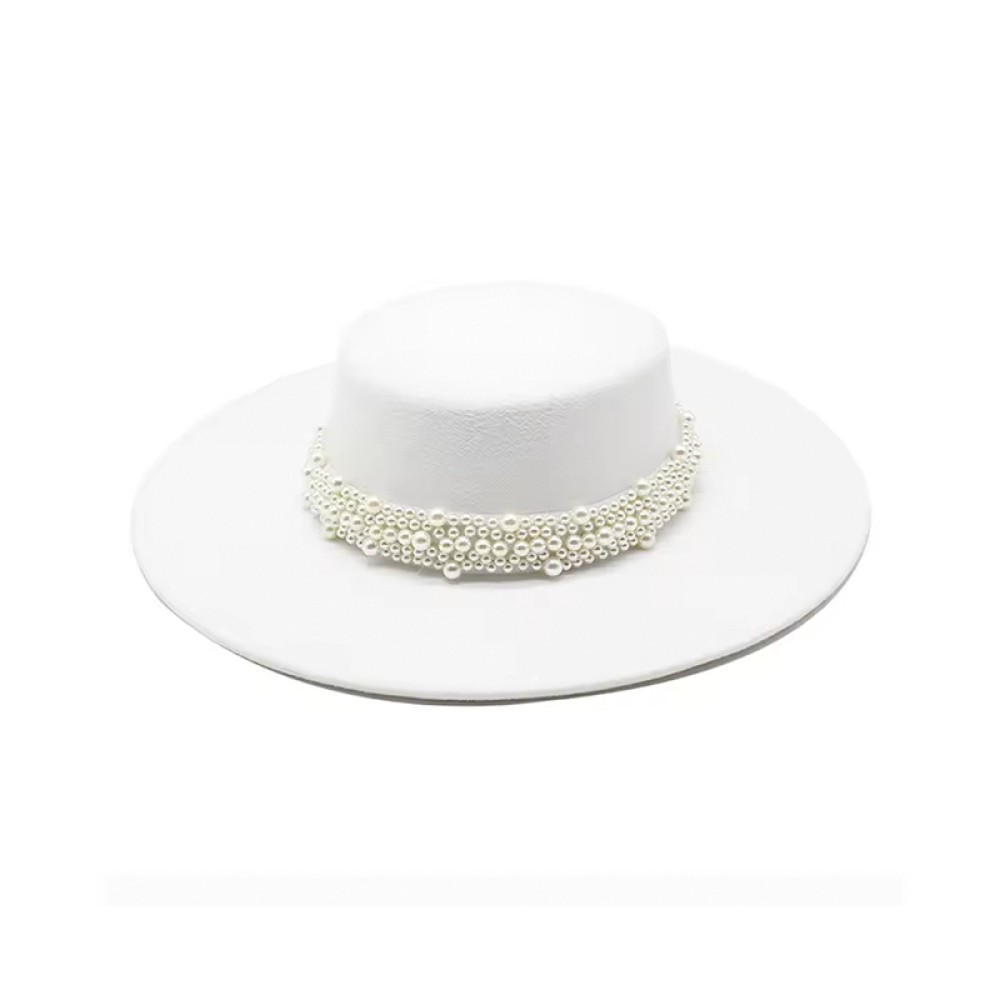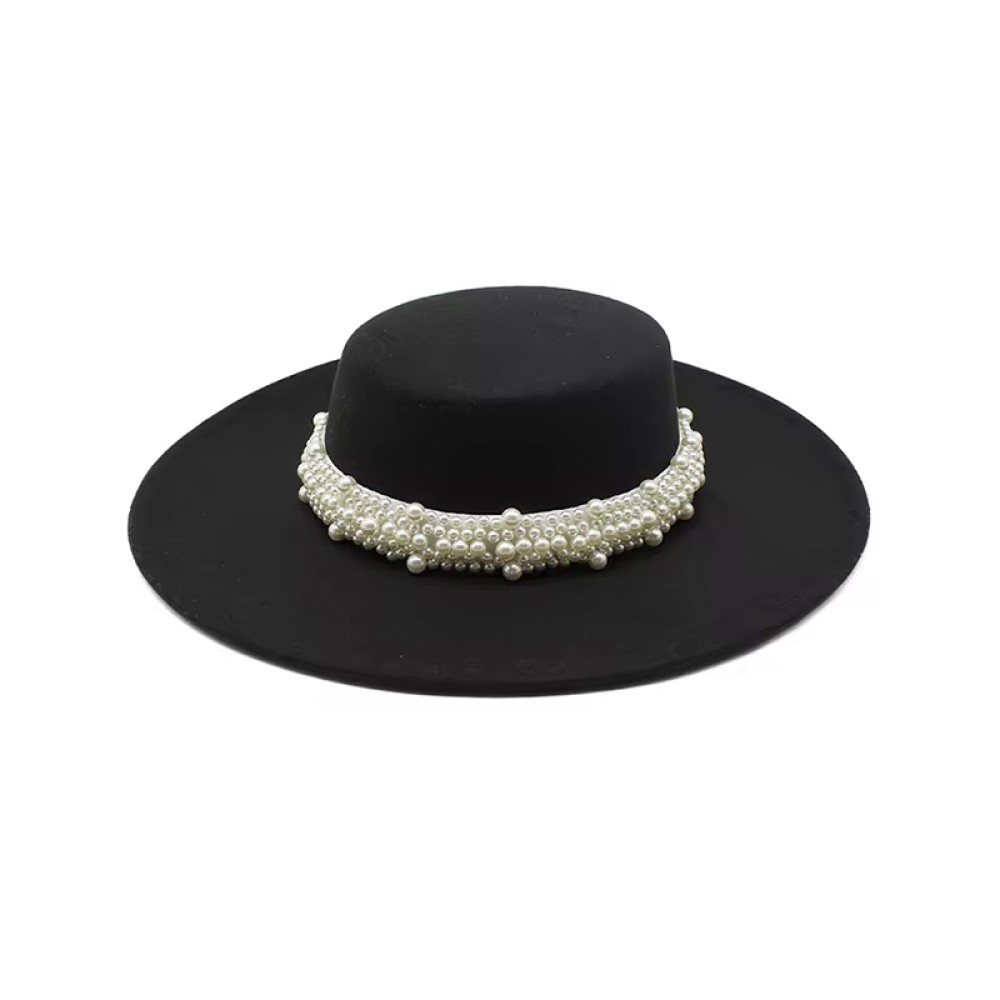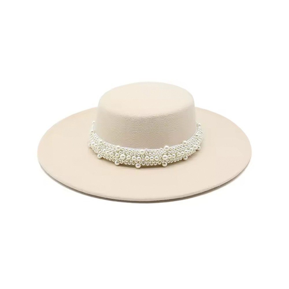 Key Features: Classic vintage style fedora hat, adorned with pearls and ribbon.